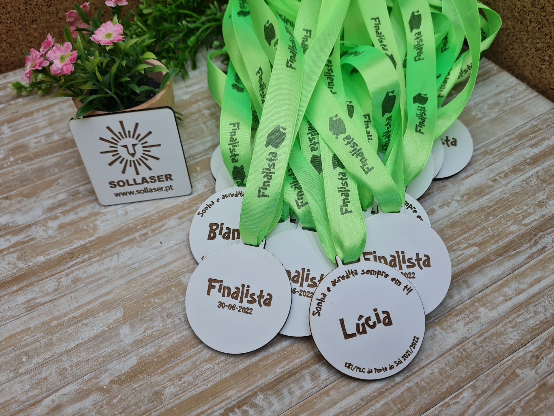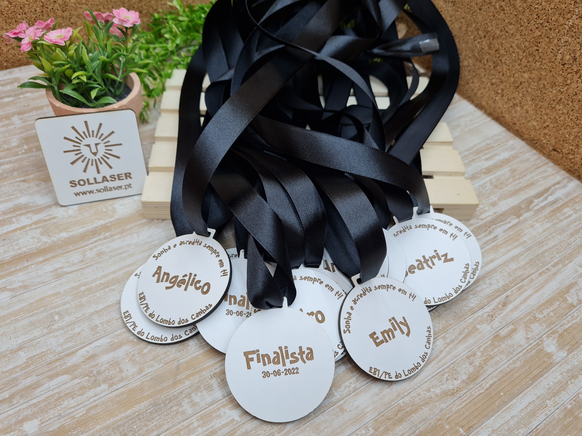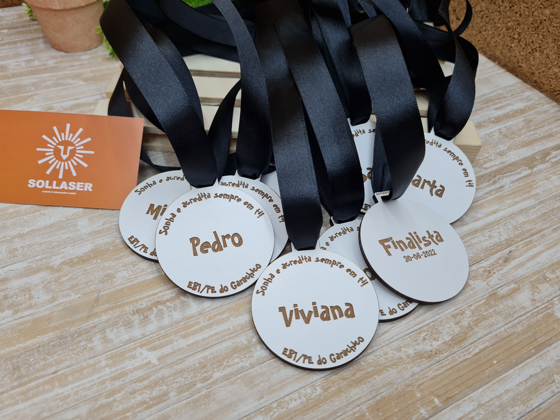 Medalhas finalistas com gravação frente e verso, a frase pode ser alterada.