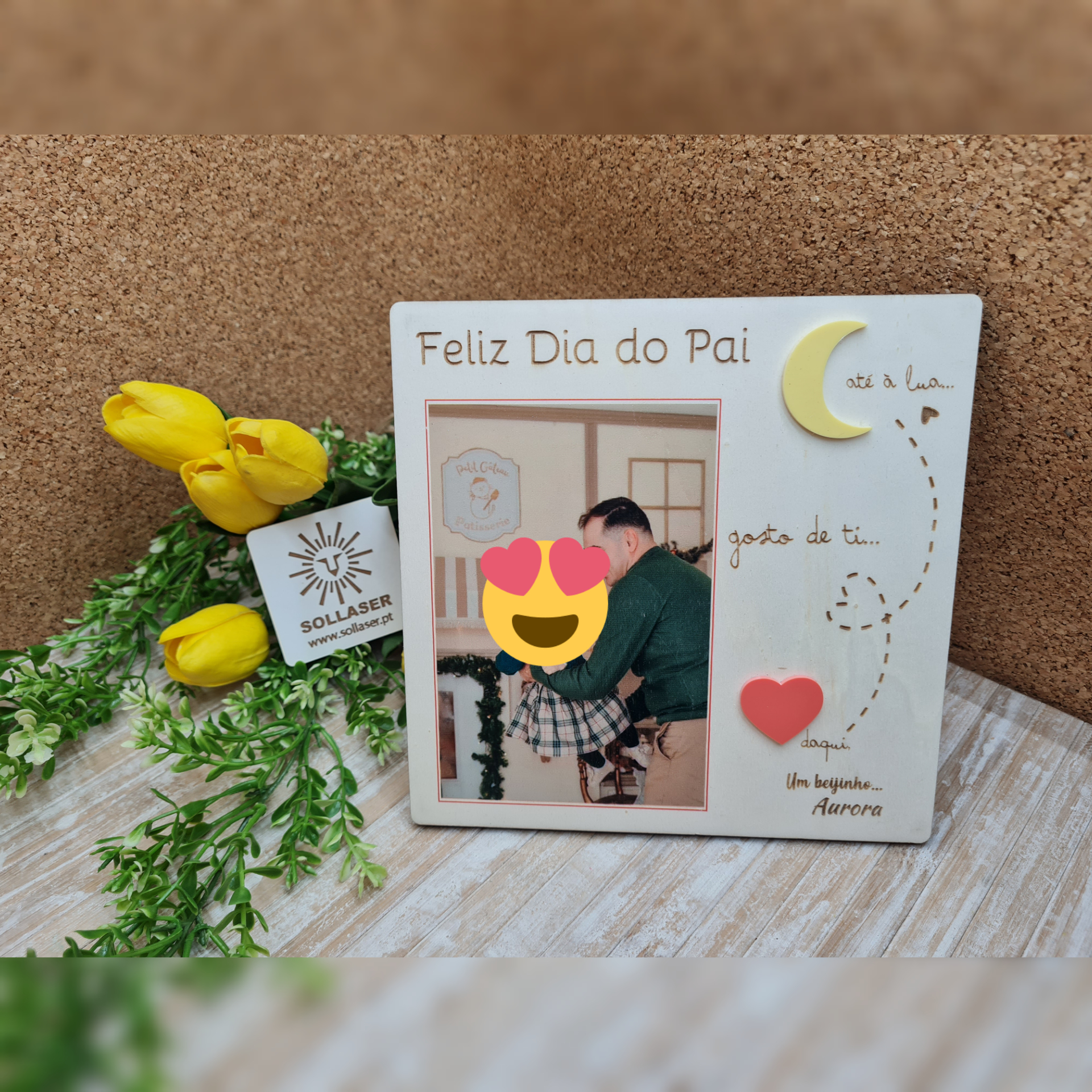 A foto pode ir impressa na moldura