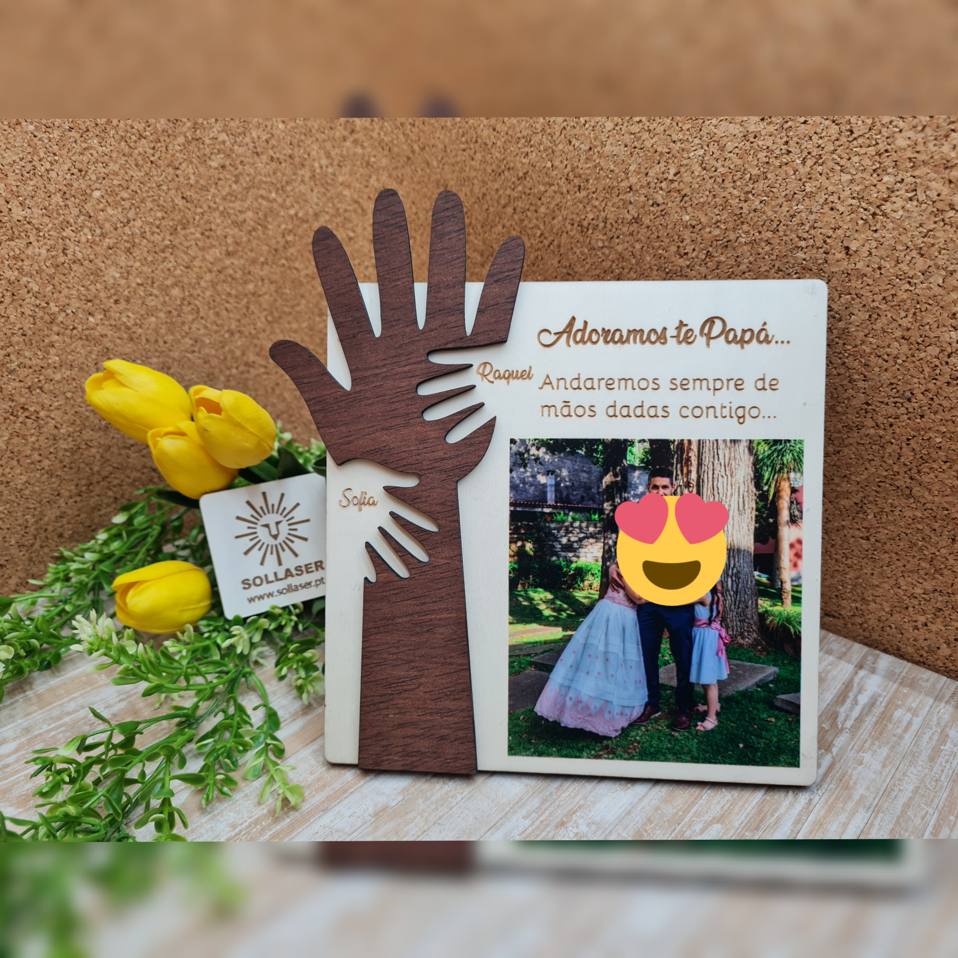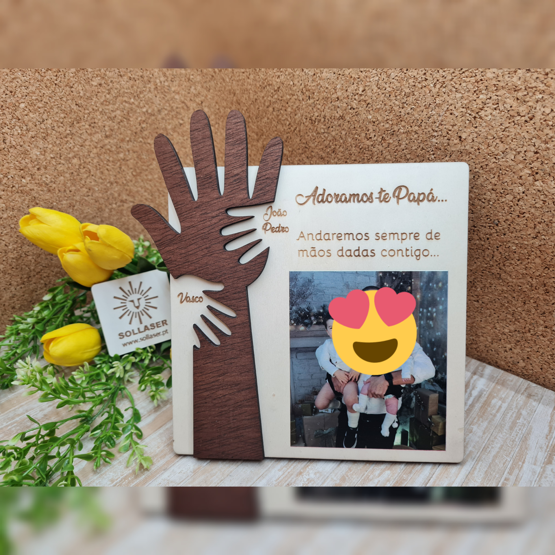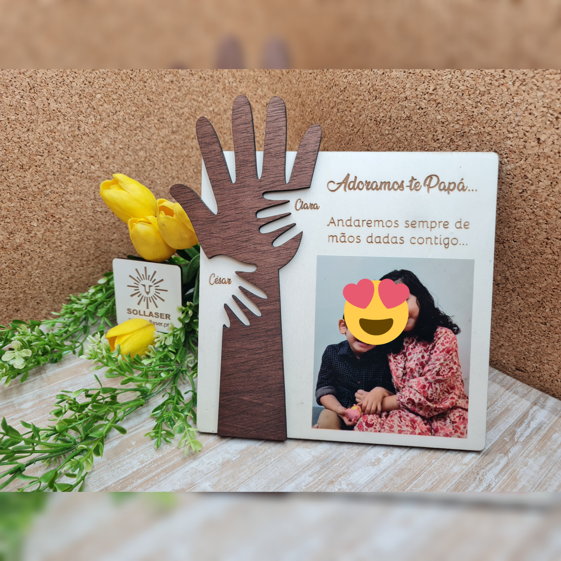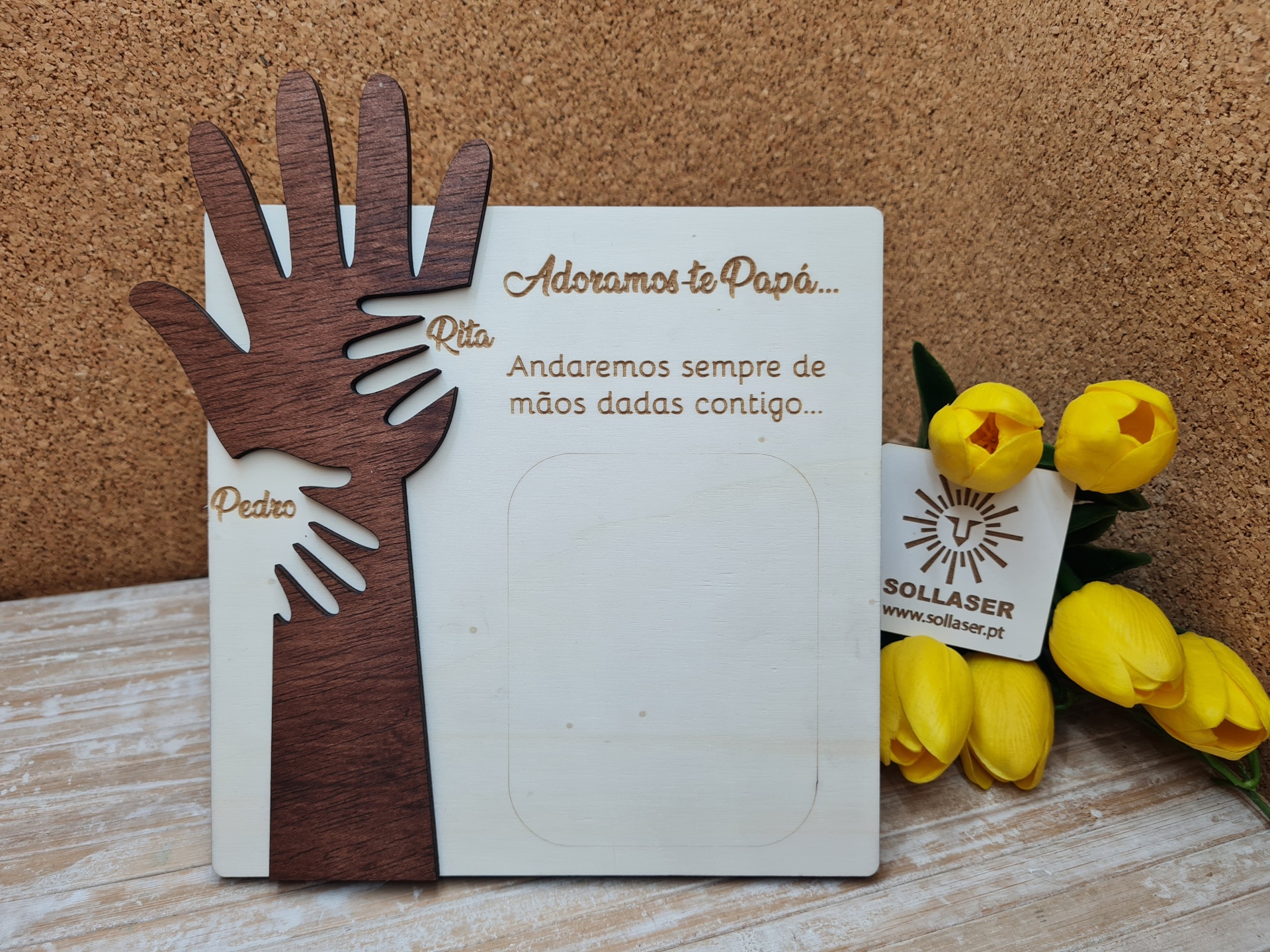 A foto pode ir impressa na moldura